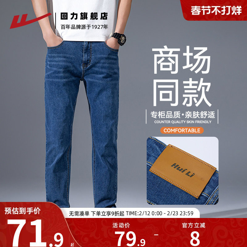回力修身牛仔裤男士春季2025新款小脚弹力牛仔直筒休闲长裤子男款