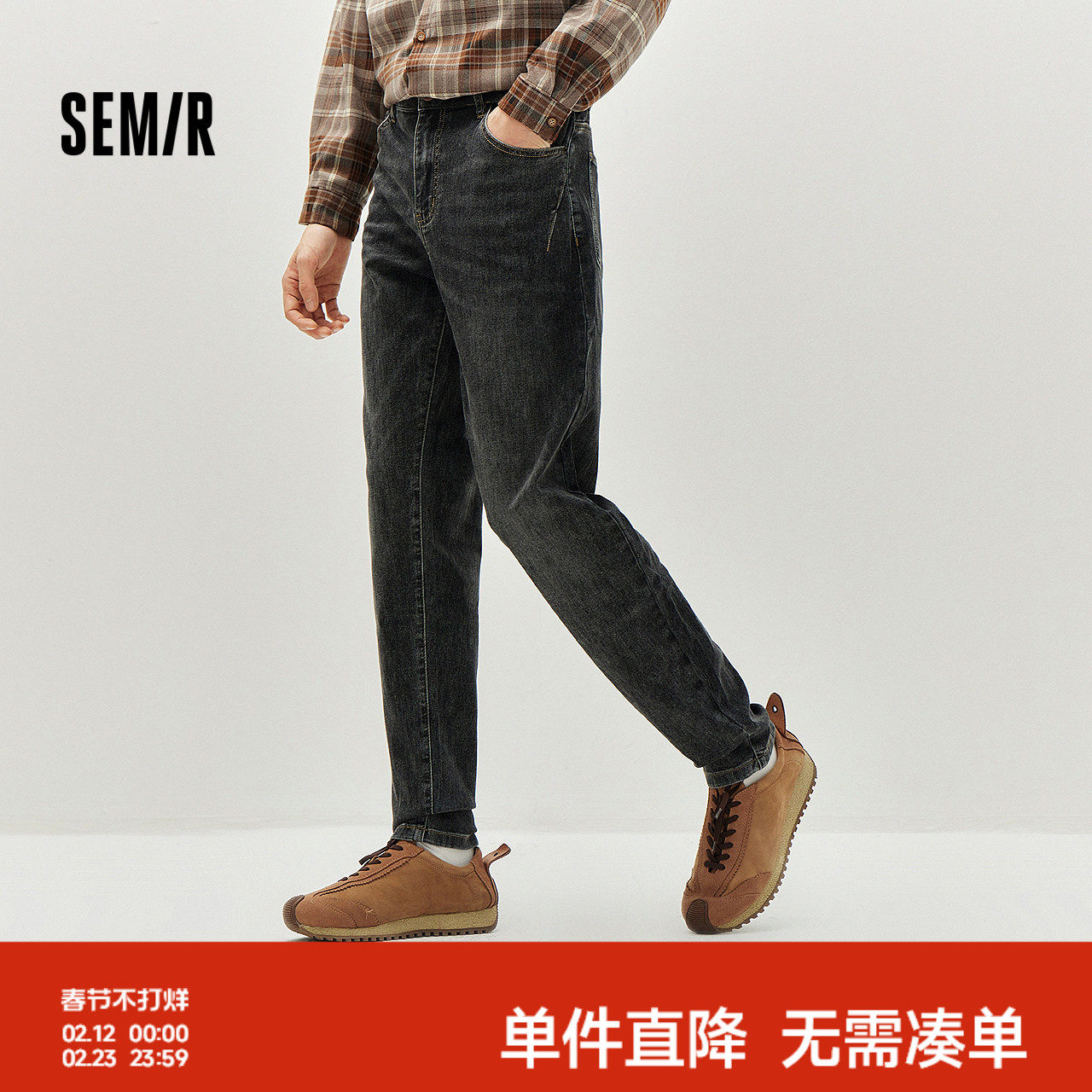 森柔|森马牛仔裤男士春季弹力合体小脚裤子复古都市日常通勤长裤