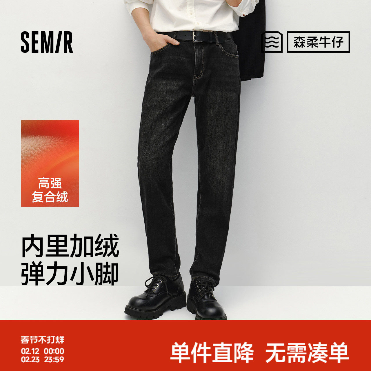 森柔牛仔|森马牛仔裤男冬磨毛小脚裤子通勤基础百搭春季长裤弹力