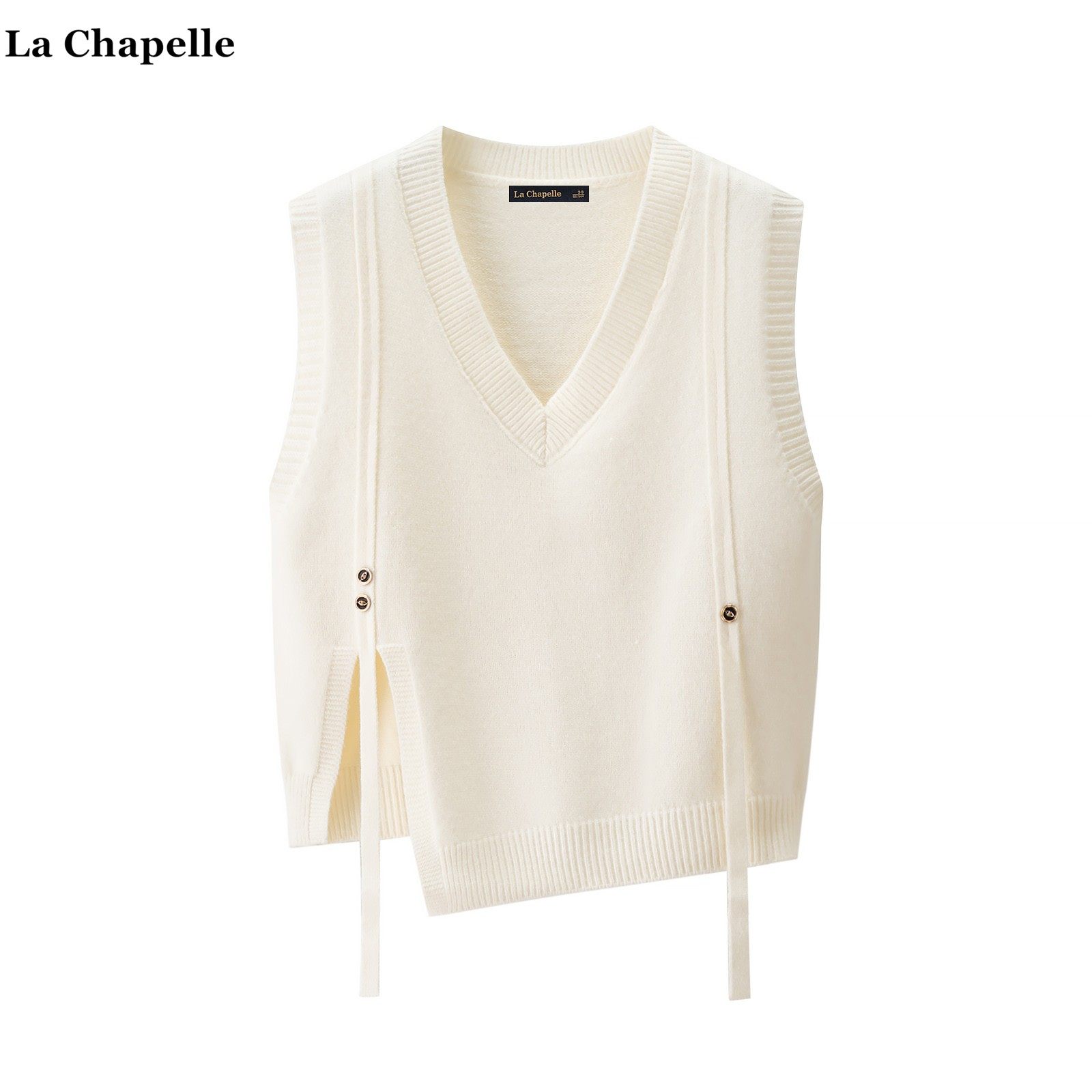 拉夏贝尔/La Chapelle设计感开叉针织马甲女秋冬新款无袖毛衣坎肩