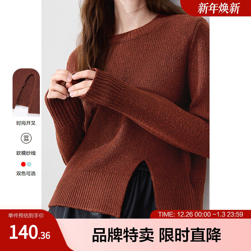 播商场同款软糯圆领薄款波嘻毛衣女春秋开叉下摆针织衫BDR8SD3387