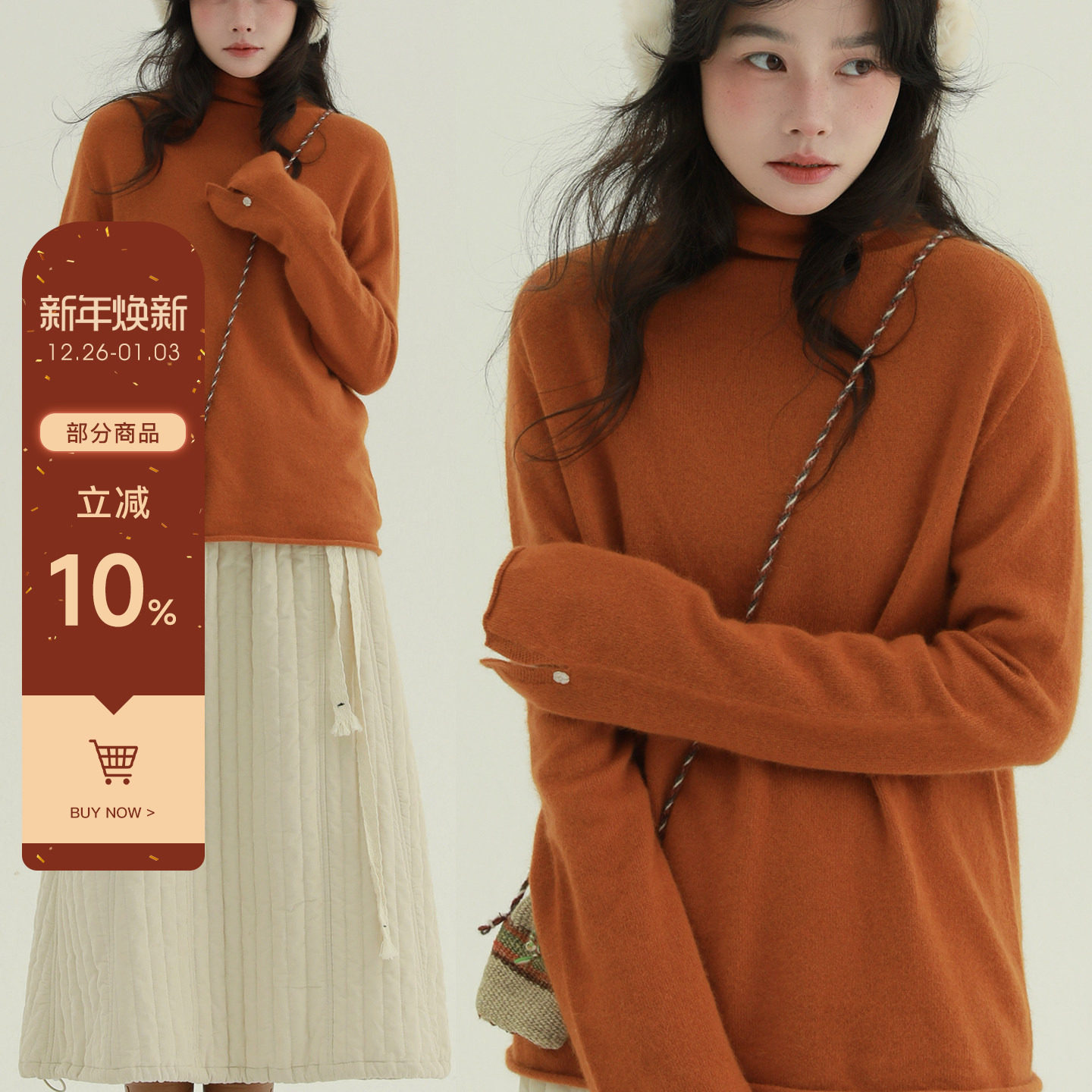 - 宽松高领毛衣女冬