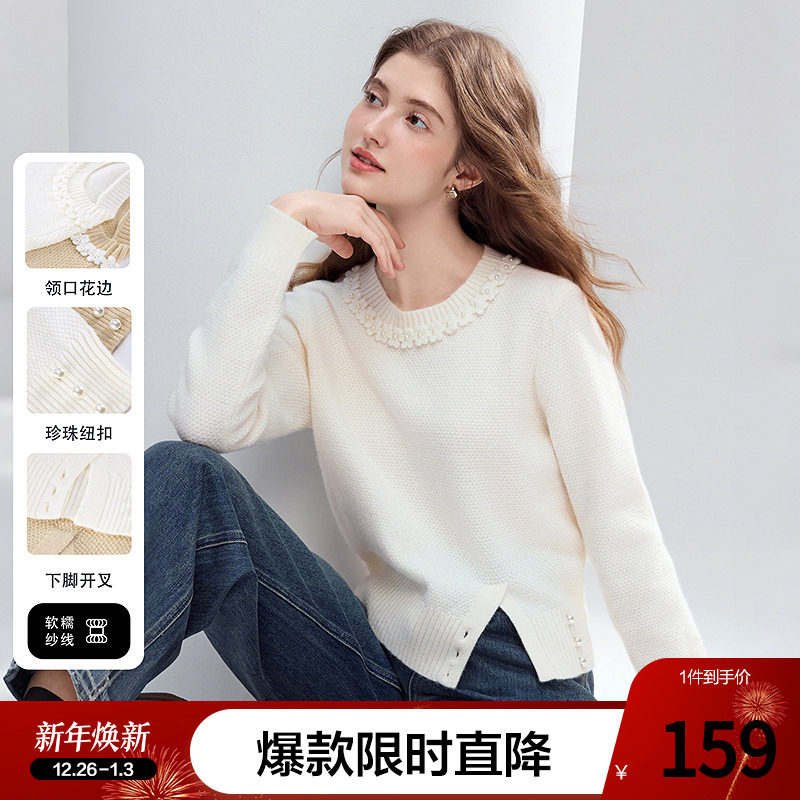- 圆领毛衣女打底白色