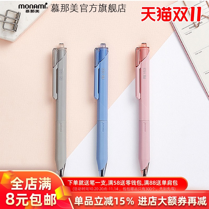 幕那美旗舰店Monami按动中性笔0.5mm黑色速干CS笔尖顺滑ins风学生考试学霸刷题笔握手软胶签字笔水笔红笔蓝笔