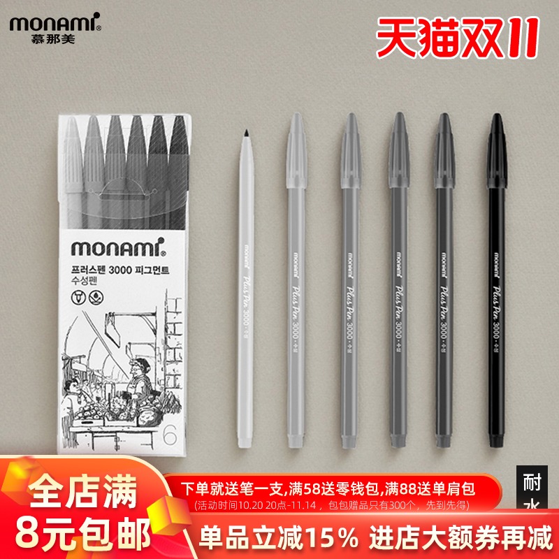 韩国Monami慕那美P3000水彩笔手账笔记勾线笔彩色笔慕娜美中性笔