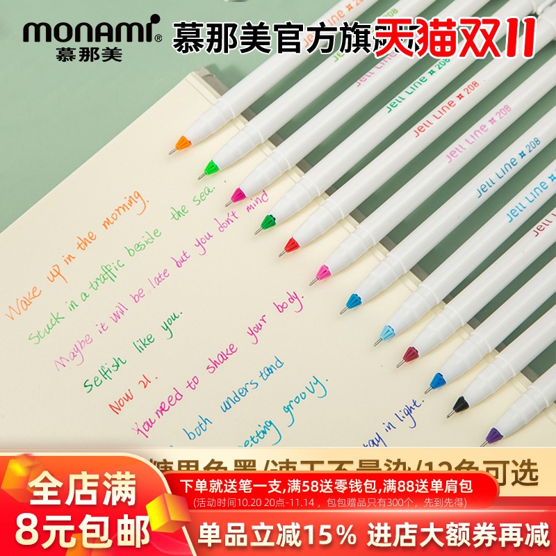 韩国monami 慕娜美208彩色中性笔勾线笔 0.4mm 草图笔多功能手账彩色创意个性萌女生用笔记中性笔日记笔细头