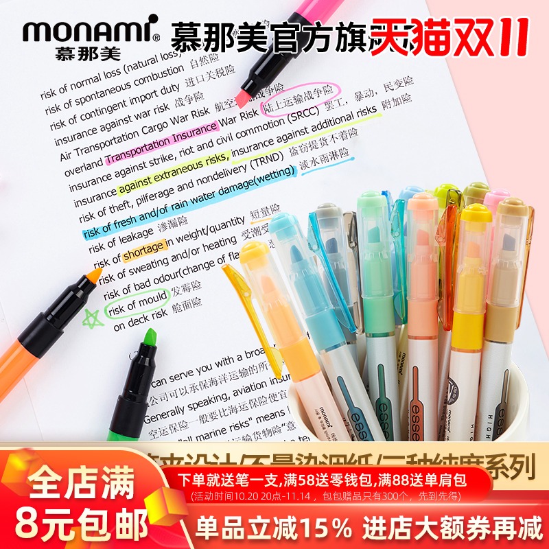 慕那美旗舰店 韩国进口monami笔夹式多色记号笔慕娜美荧光笔明亮色学生用彩色马克笔糖果色马卡龙色Essenti