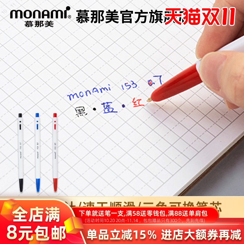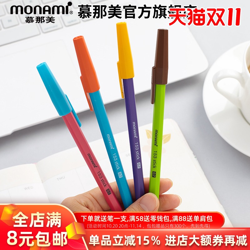 慕那美韩国进口Monami0.7mm简约六角形笔杆设计圆珠笔学习阅读办公会议绘画勾线划线颜色醒目BP153慕娜美1008