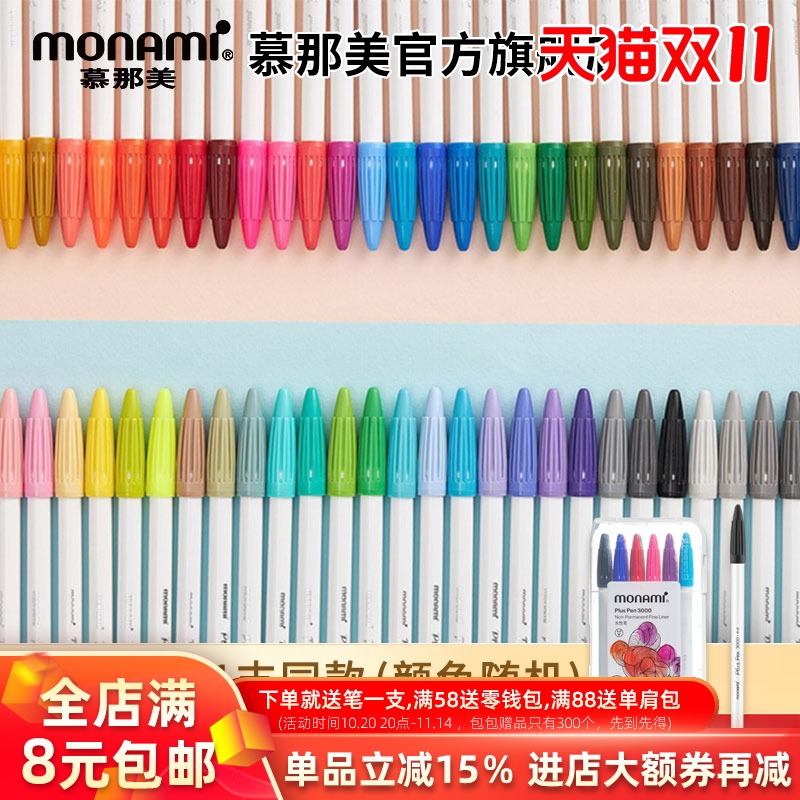韩国monami慕那美3000彩色纤维水性笔涂鸦笔日记手账素材绘画画笔