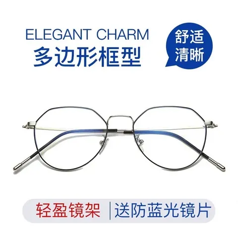 眼镜复古平光镜光学潮眼镜架防蓝光女配近视多边形网红款男眼镜框