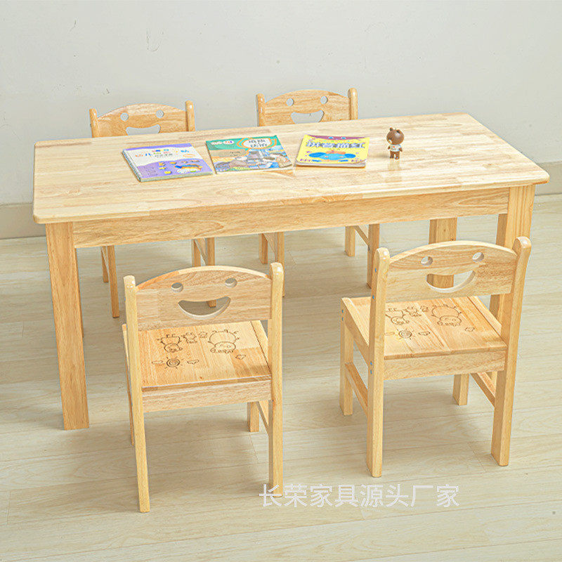 幼儿园桌椅实木托管班小孩家用松木橡木正方桌子儿童写字桌椅小桌