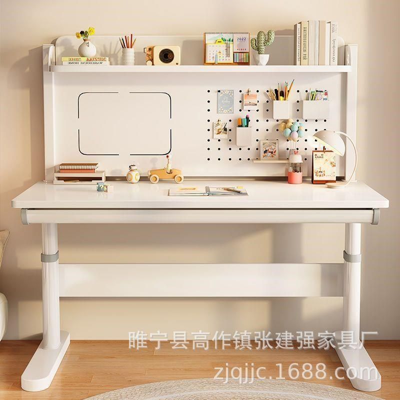 书桌可升降洞洞板儿童写字桌椅套装实木升降学生家用学习桌写字台