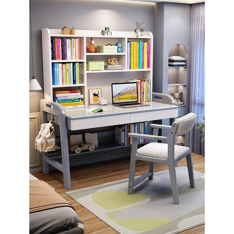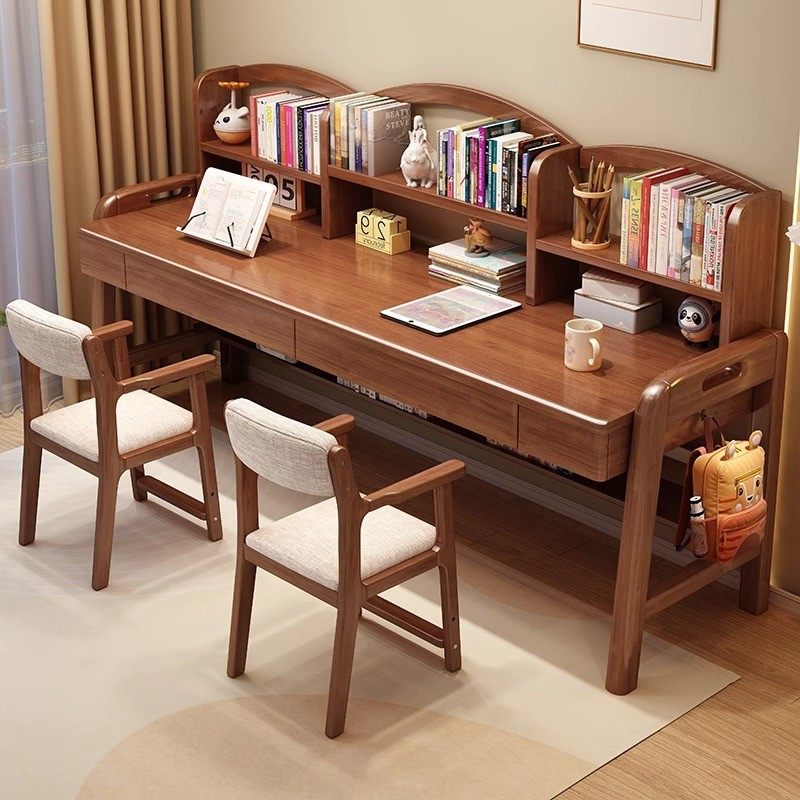 小学生书桌家用实木学习桌儿童写字桌带书架一体初高中生电脑桌子