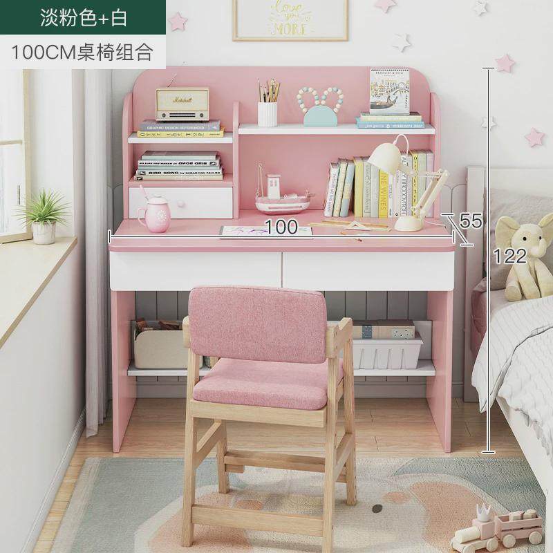 儿童写字桌家用女孩书桌书架组合一体学生作业桌学习桌卧室写字台