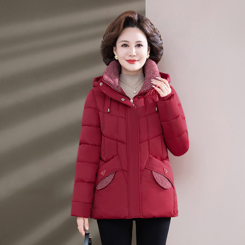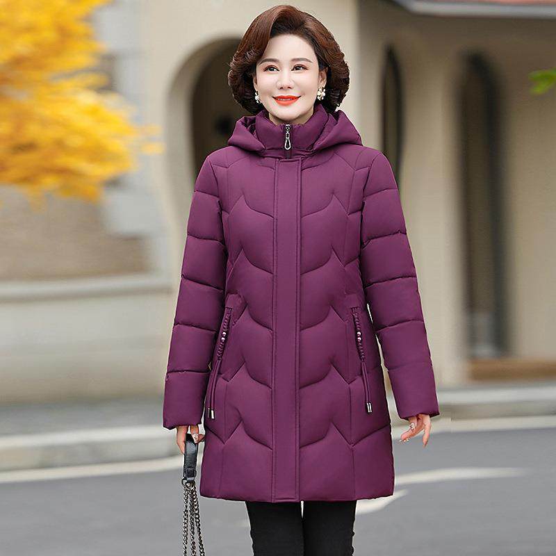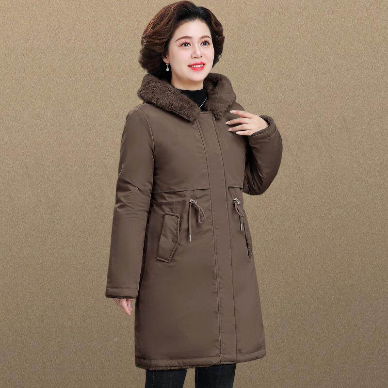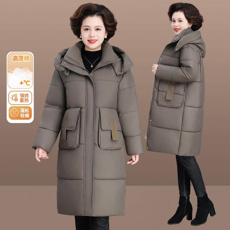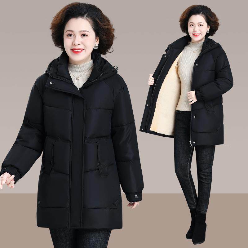 佳源95-108大码冬新款时尚中老年连帽棉服加绒加厚中款妈妈装外套