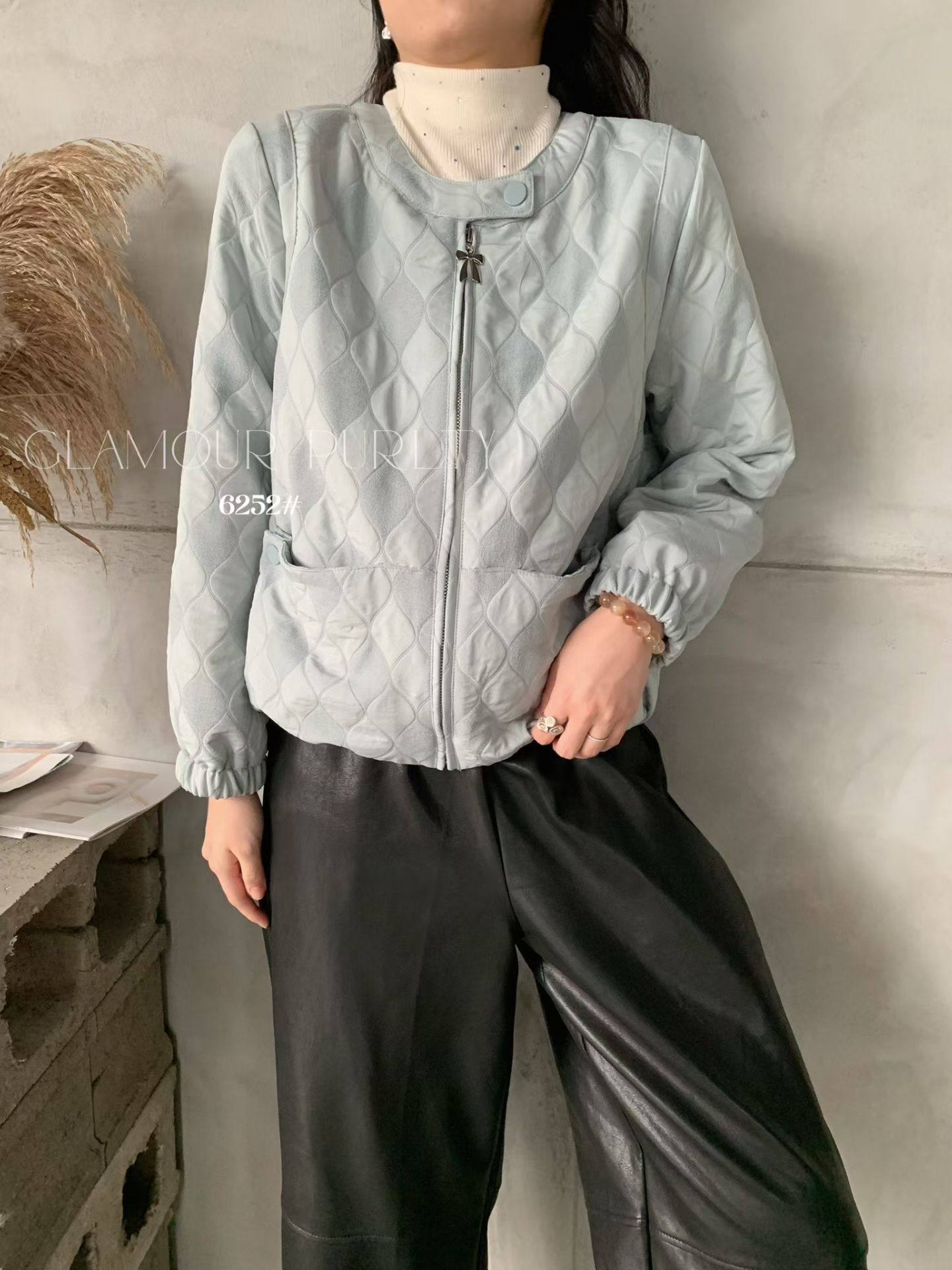 Minmiu 2025新款棉服中款丝棉休闲低领收口浅色外套夹克