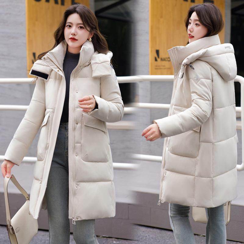 冬季中款加厚连帽长2308/50.包款过膝大码棉衣外套女棉服面服潮可