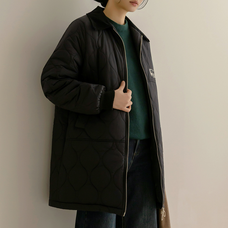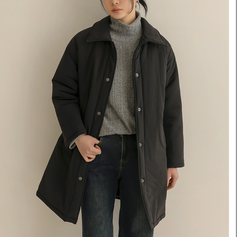 韩国代购大码女装2025靓丽冬装新款翻领系扣宽松时尚保暖中款棉衣