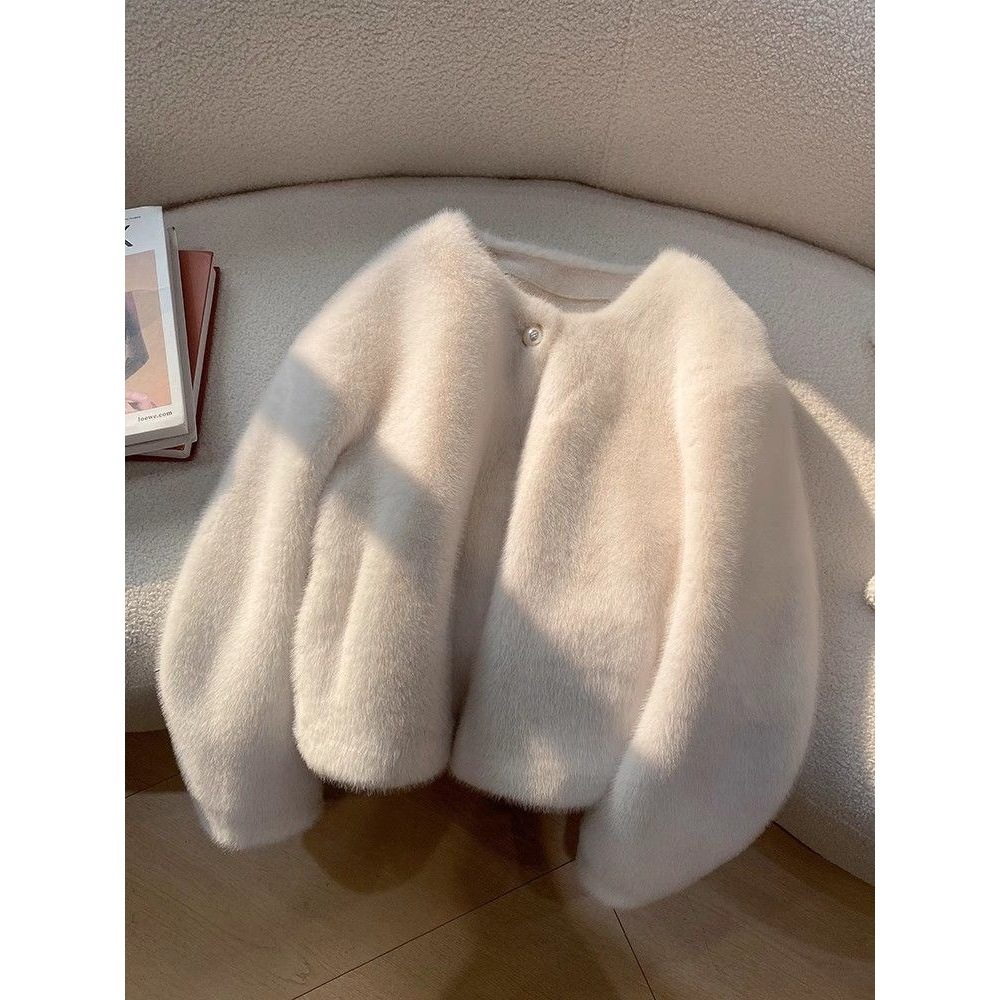 仿天鹅绒貂皮大衣皮毛一体珍珠扣短款金貂绒皮草女冬毛毛外套整皮