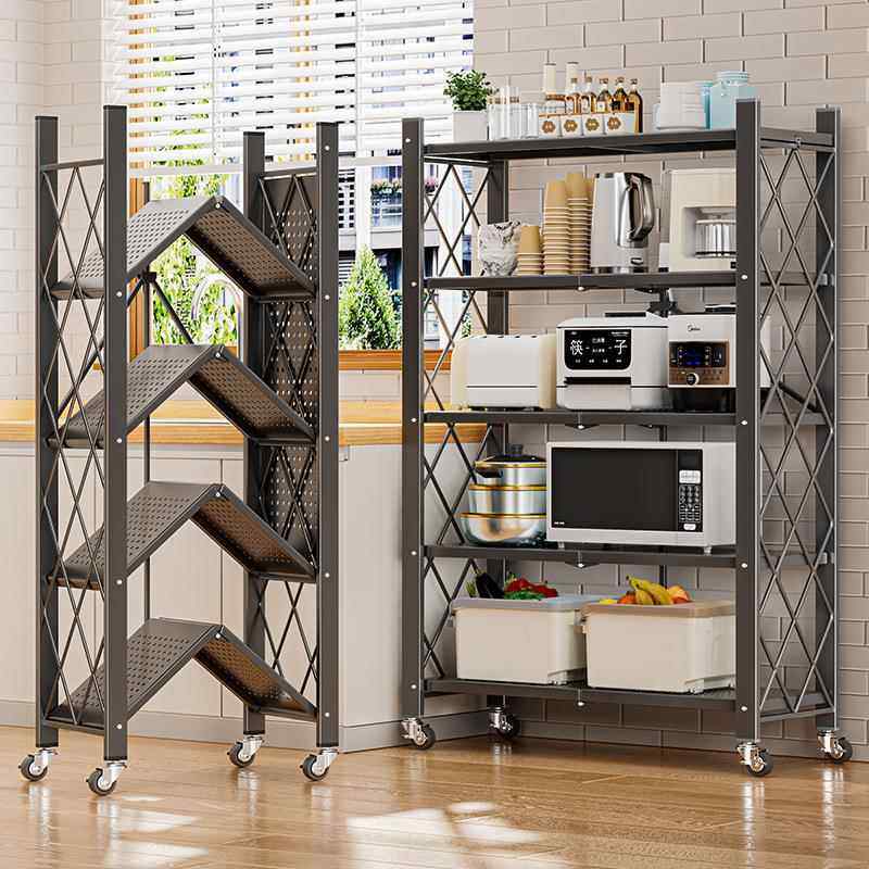 厨房免安叠装落地物架客厅书房置折收小推车置纳置物架可移动厅储