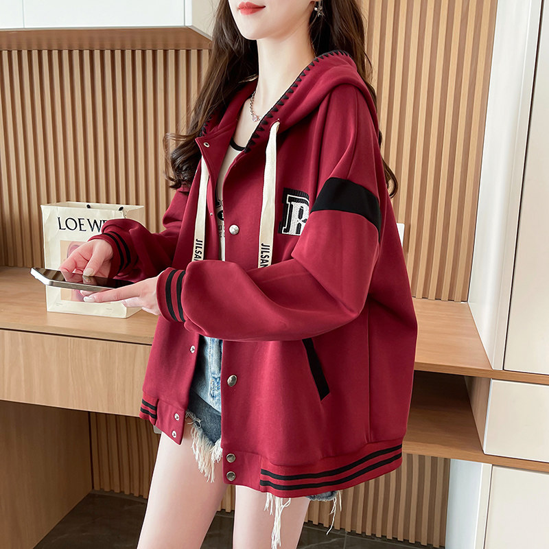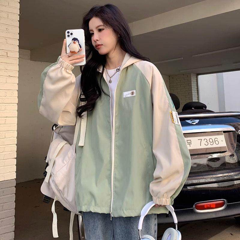 2025春季连帽外套女初中高中学生韩版宽松百搭工装棒球服夹克港风