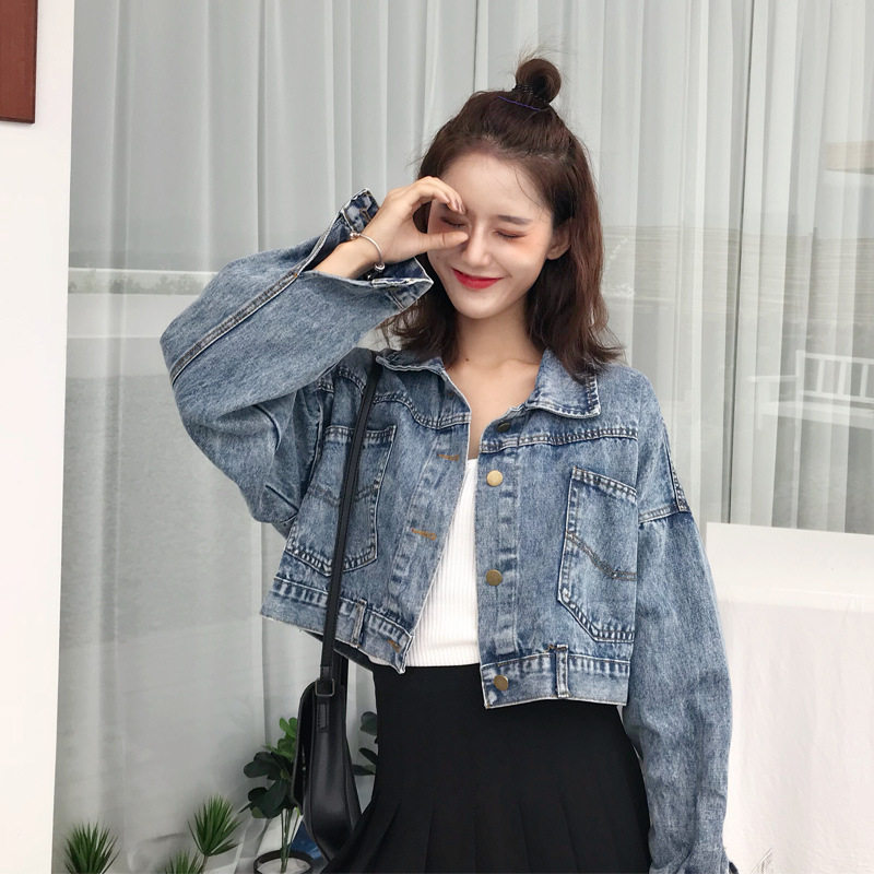 2024春季新款复古韩版蝙蝠袖牛仔外套女短款百搭宽松学生夹克女潮