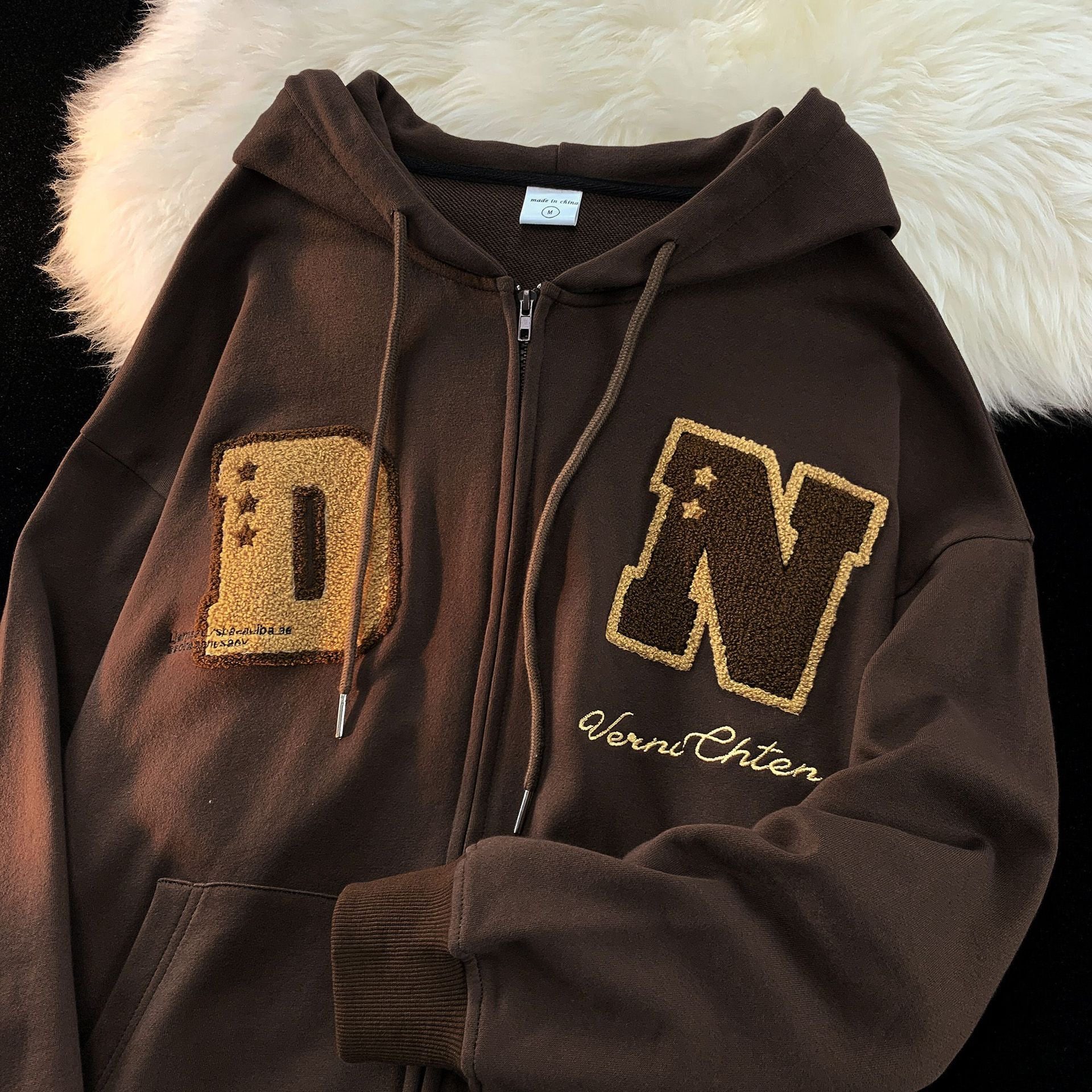 韩版小熊刺绣卫衣外套女春季新款学生休闲运动慵懒风百搭宽松开衫