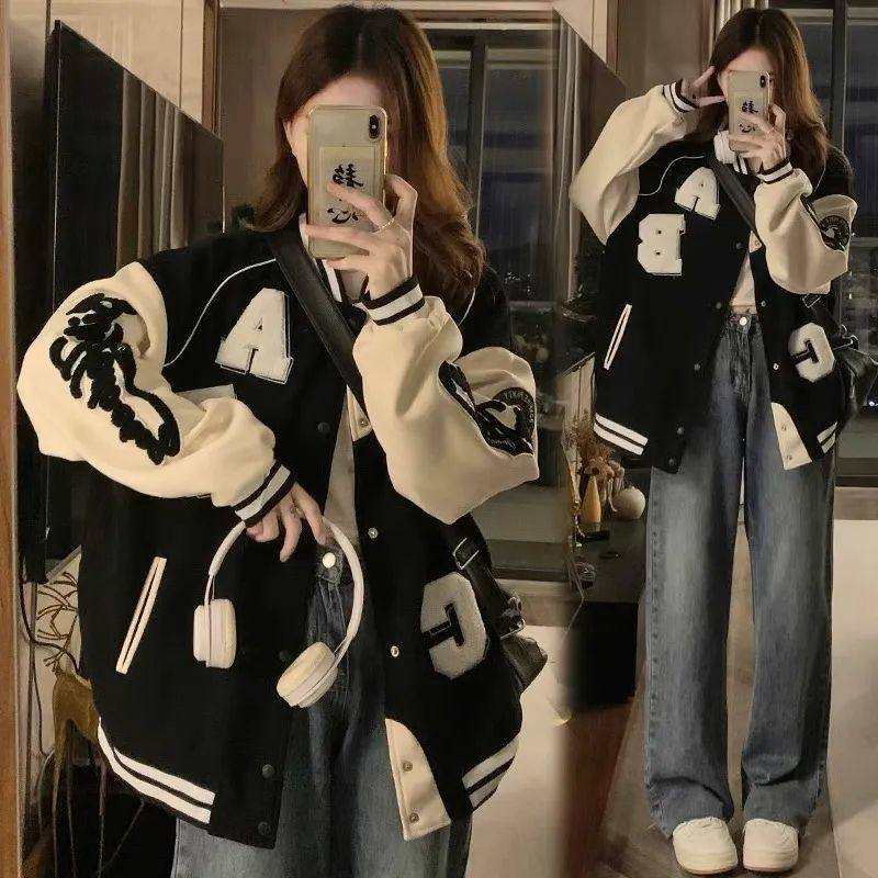 vintage美式拼接刺绣棒球服女2025春季新款韩版百搭学生宽松外套