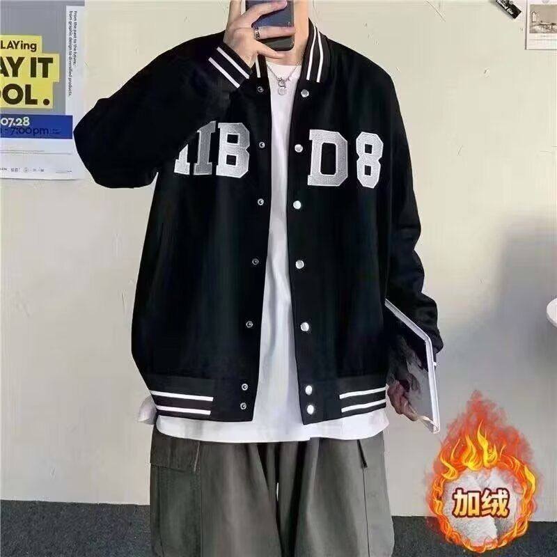宽松棒球加绒韩版春季港风炸街夹克潮流上衣外套百搭痞帅服学生男