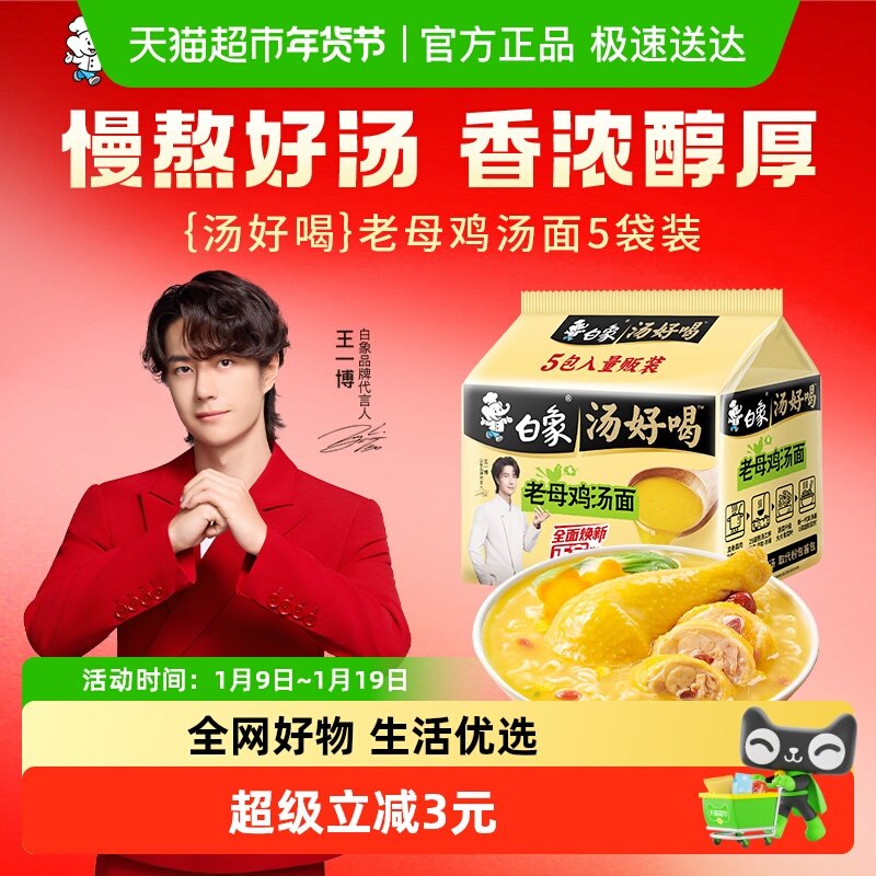 包邮天天特卖白象汤好喝老母鸡高汤面110g*5袋泡面方便面速食