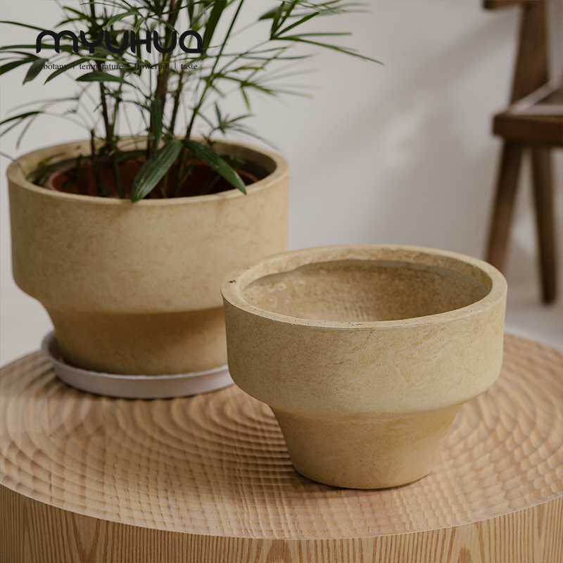 侘寂风驼色圆锥形花盆仿水泥桌面客厅阳台蝴蝶兰绿植简约创意花盆