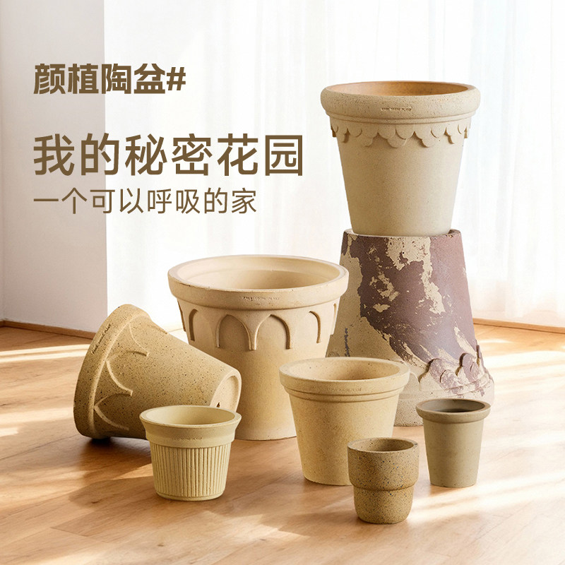 虹越颜植陶土花盆甜筒系列室内阳台粗陶创意花盆简约透气家用种植