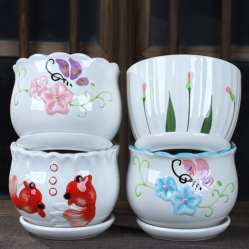 花盆陶瓷带托盘大号特大号特价清仓创意透气绿萝多肉绿植花盆批发