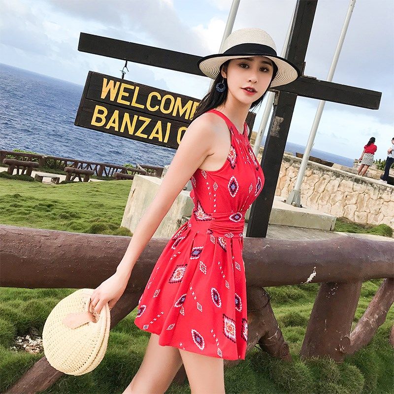 2021新款温泉游泳衣女夏分体裙式保守遮肚显瘦小清新学生韩国ins