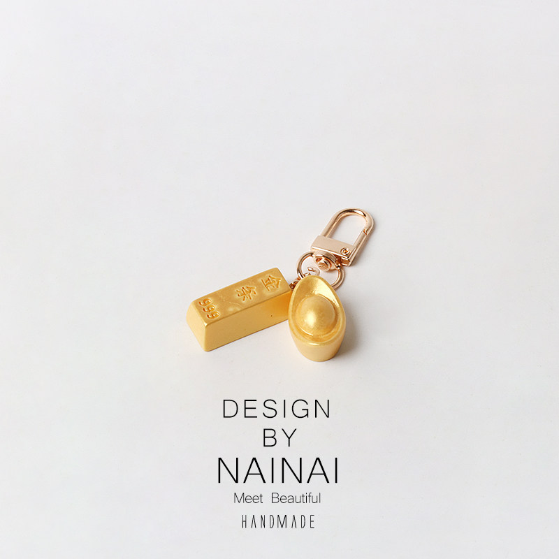 创意设计金条黄金钥匙扣挂件简约背包包汽车书包男女发财红中挂饰