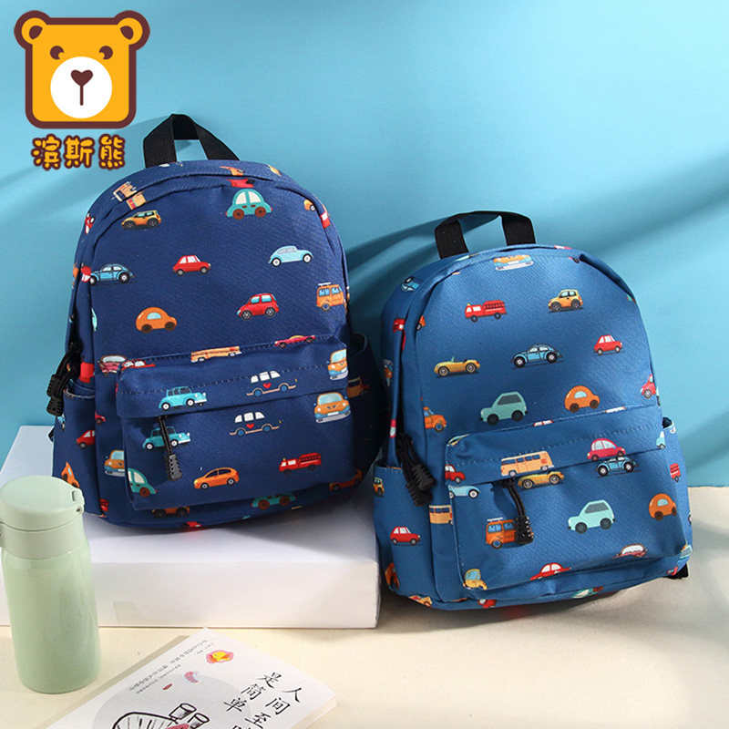 滨斯熊儿童书包卡通汽车书包男孩小背包幼儿书包幼儿园减负透气包