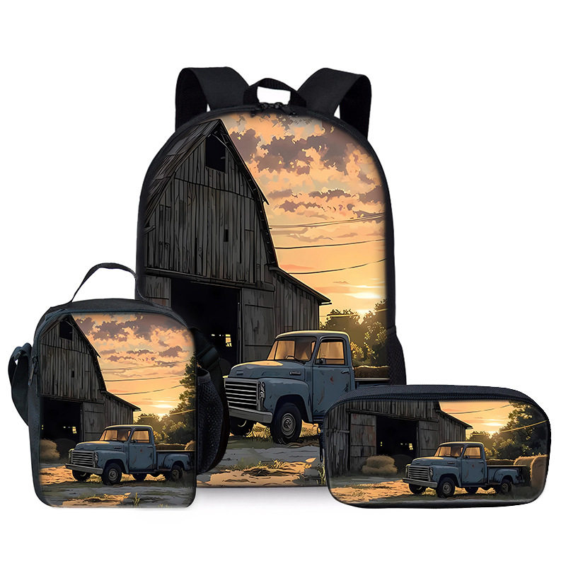 日落汽车书包学生儿童宝宝三件套双肩包餐包笔袋时尚百搭便携可爱