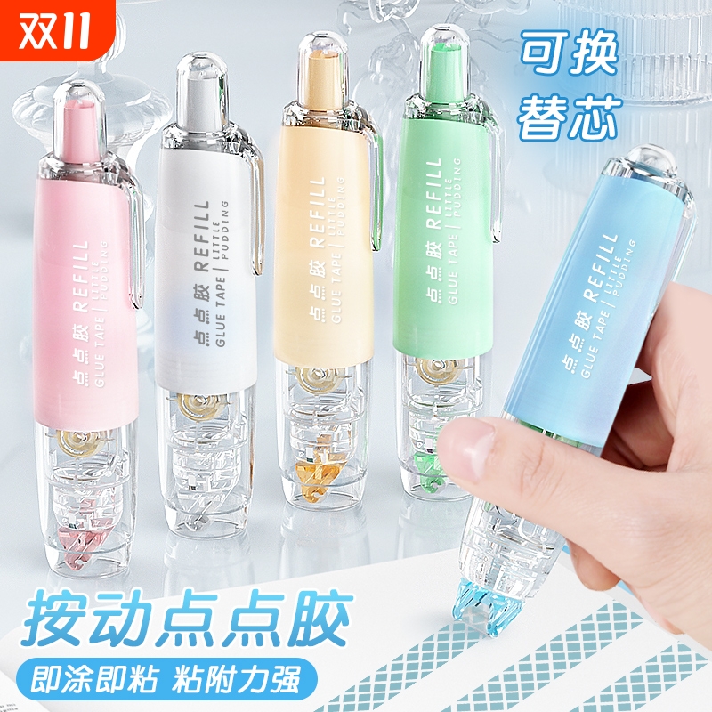 按动点点胶修正带式点胶笔强力点状无痕透明胶带儿童手工高粘度小学生用可替换芯手帐贴纸错题双面纳米胶文具