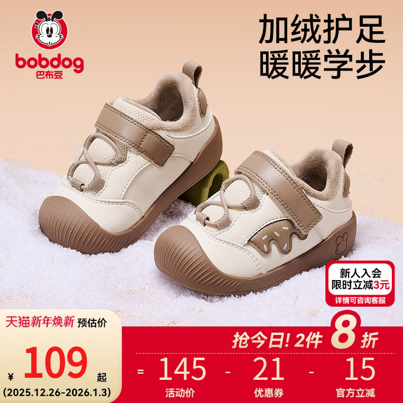 巴布豆宝宝冬鞋女童冬季新款学步加绒鞋子防滑保暖二棉鞋儿童童鞋