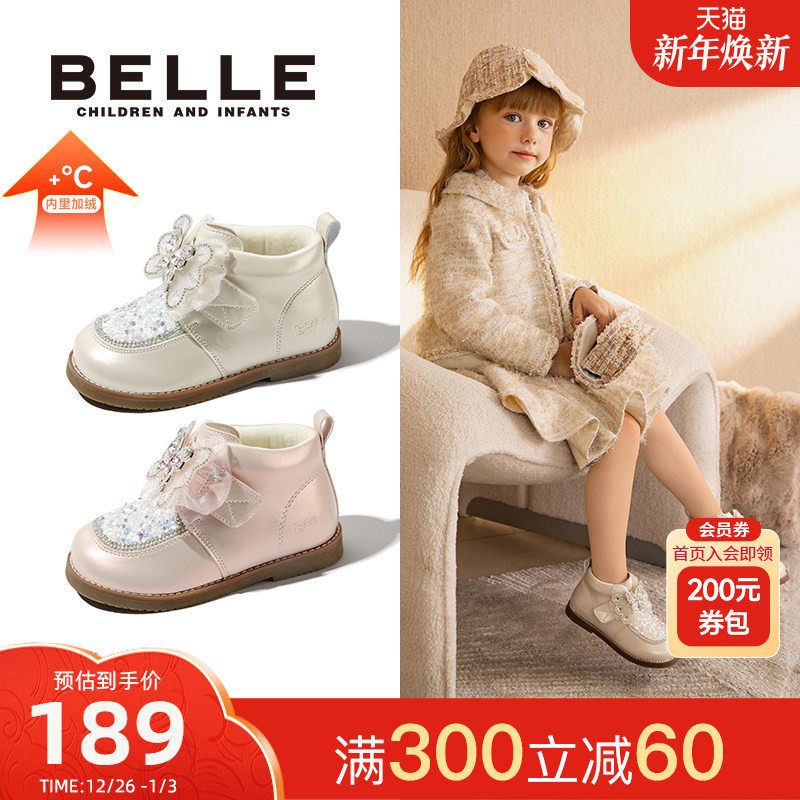 百丽童鞋女童棉鞋加绒秋冬新款小女孩宝宝冬鞋儿童公主鞋女宝皮靴