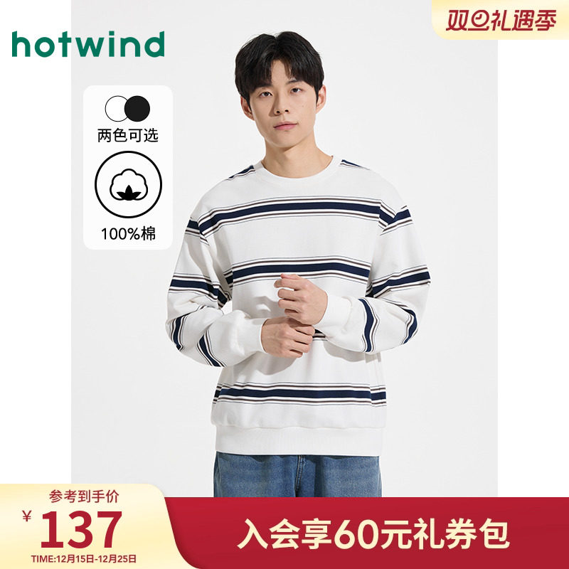 热风2025年冬季新款男士时尚宽松加绒条纹卫衣柔软亲肤温暖舒适