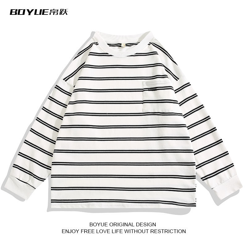 BOYUE帛跃纯棉条纹卫衣春秋港风日常学生百搭休闲情侣打底T恤长袖