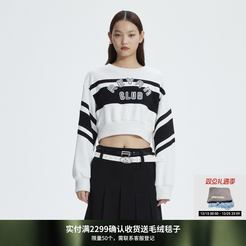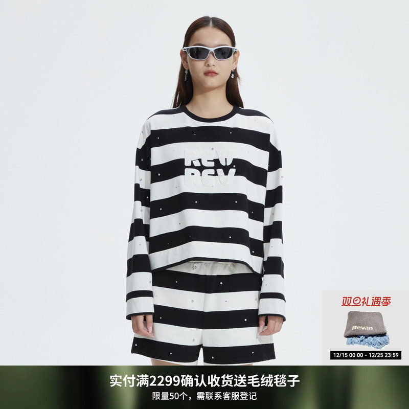 REVAN芮范设计师款简约休闲风横条纹卫衣RN11002023