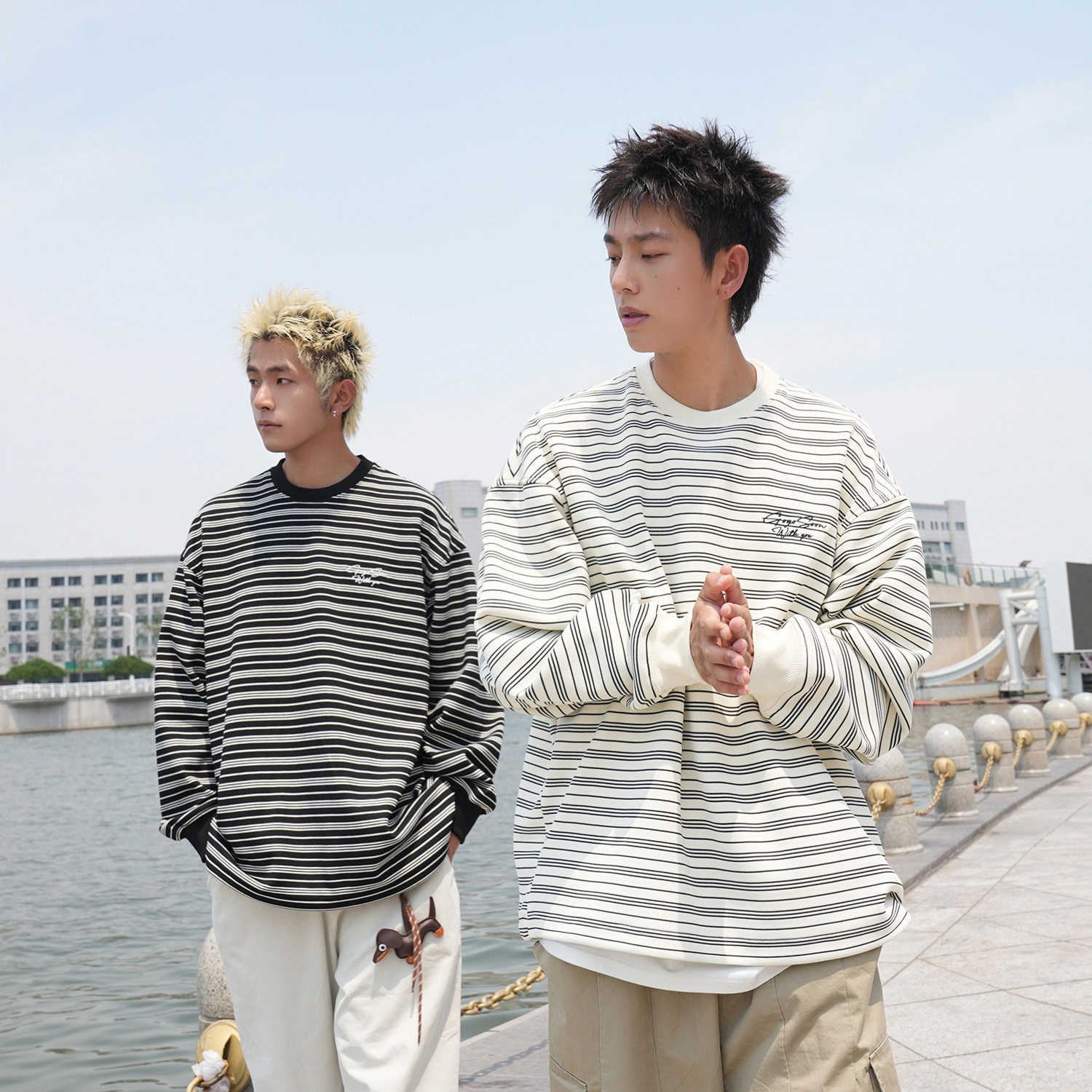 Nobodyknows日系复古条纹卫衣宽松休闲百搭男女百搭情侣潮牌上衣