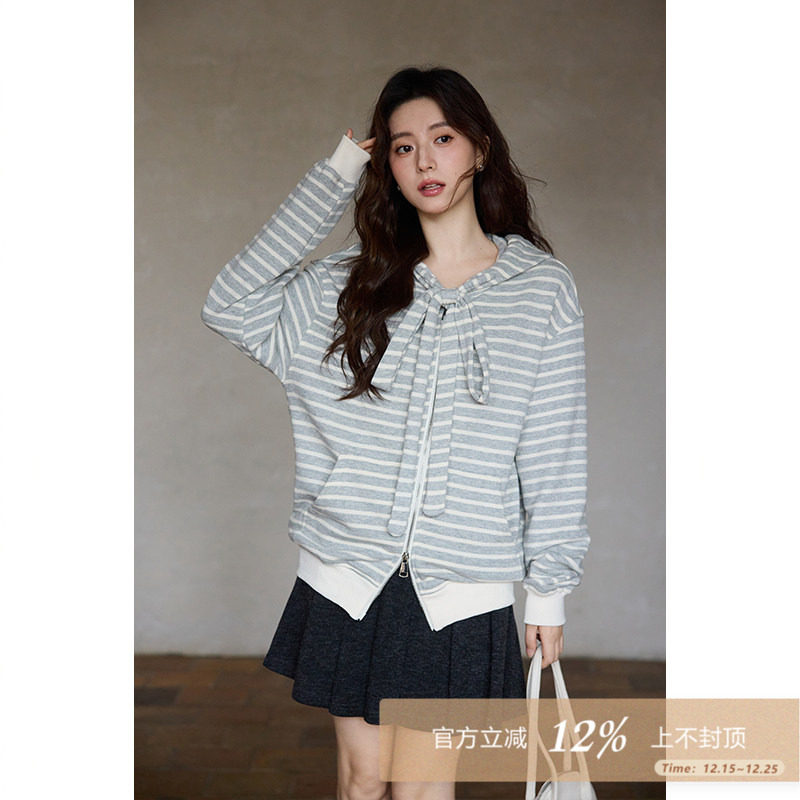 【Achock官方店】显瘦针织衫条纹连帽卫衣拉链外套女春秋款上衣潮