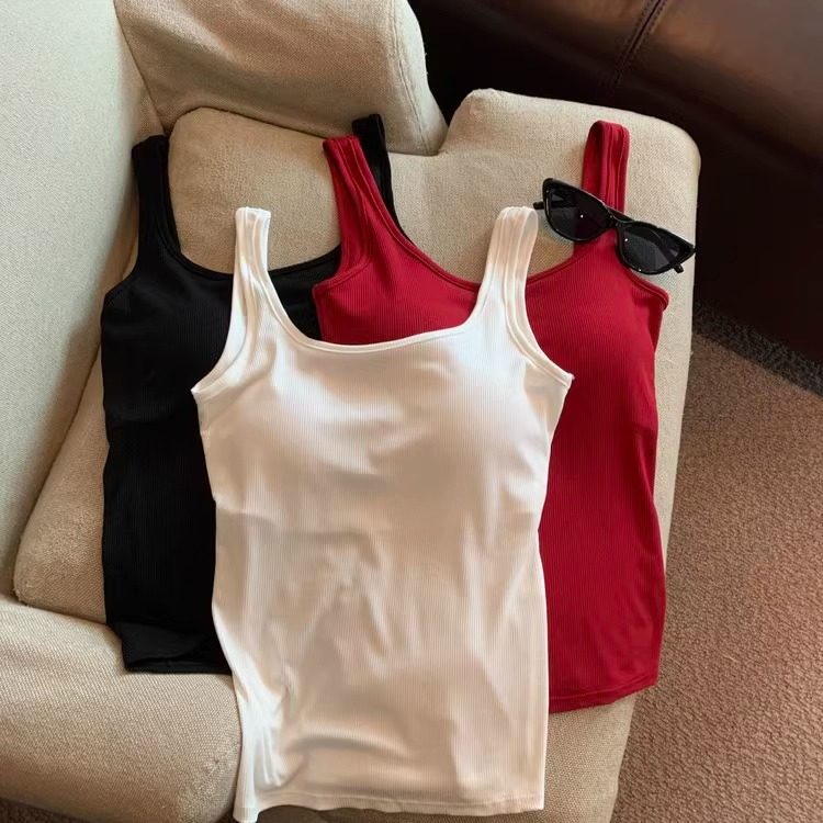 带胸垫一体背心美式新款吊带外穿运动内搭性感修身无袖百搭上衣女