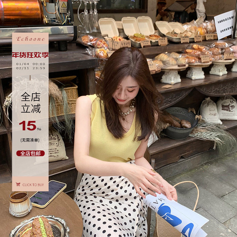 Echoone cheese 绵羊毛背心修身显瘦内搭吊带外穿两穿无袖上衣女