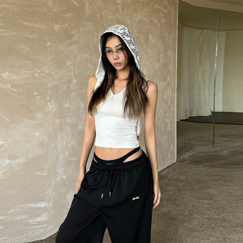 甜酷辣妹独特小吊带外穿女不规则假两件性感挂脖短款超火背心上衣