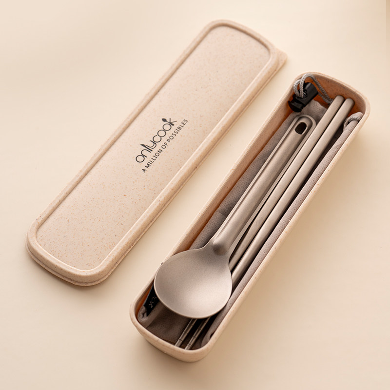 onlycook纯钛便携餐具筷子勺子一人专用旅行轻量户外野餐筷勺套装