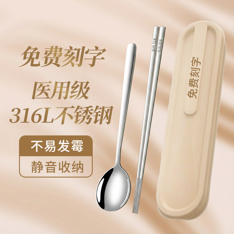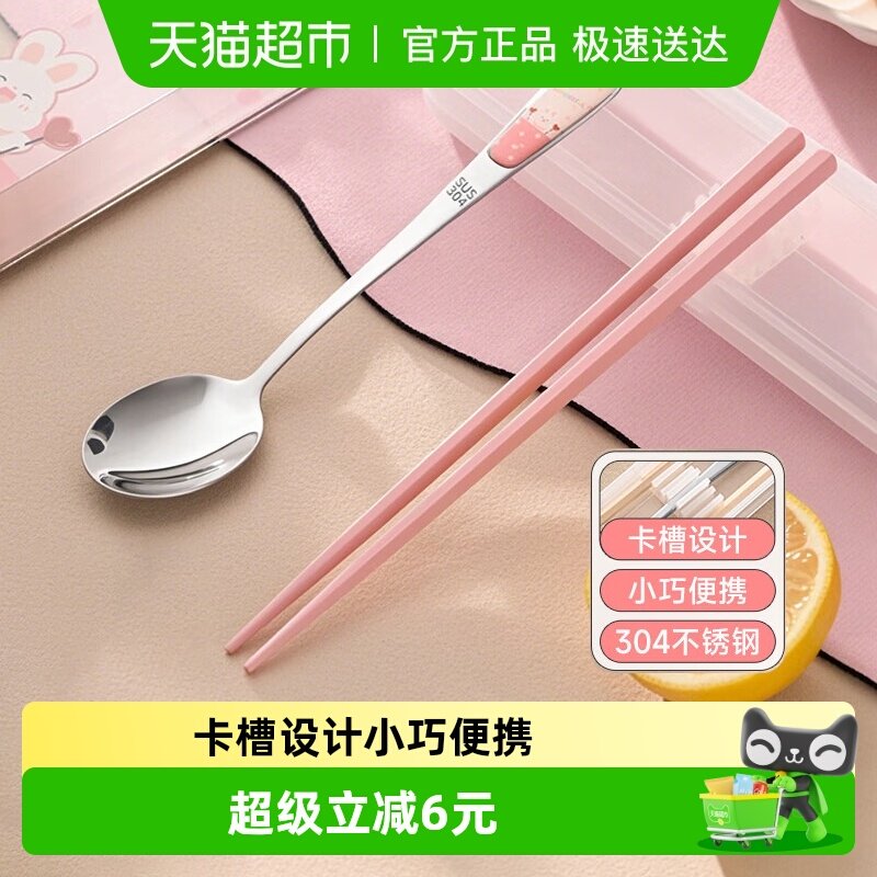 可爱筷勺套装高颜值筷子盒子便携餐具304不锈钢学生筷勺两件套装